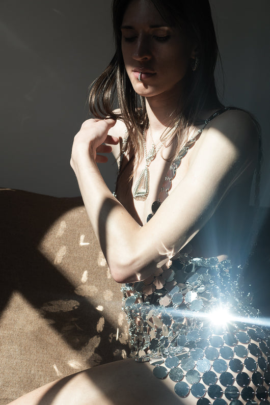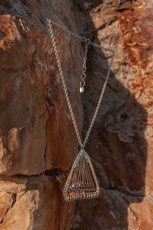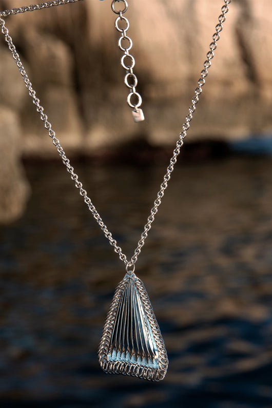 Large Fin pendant has a 54 cm long chain; the pendant is 58 mm long and 37 mm wide